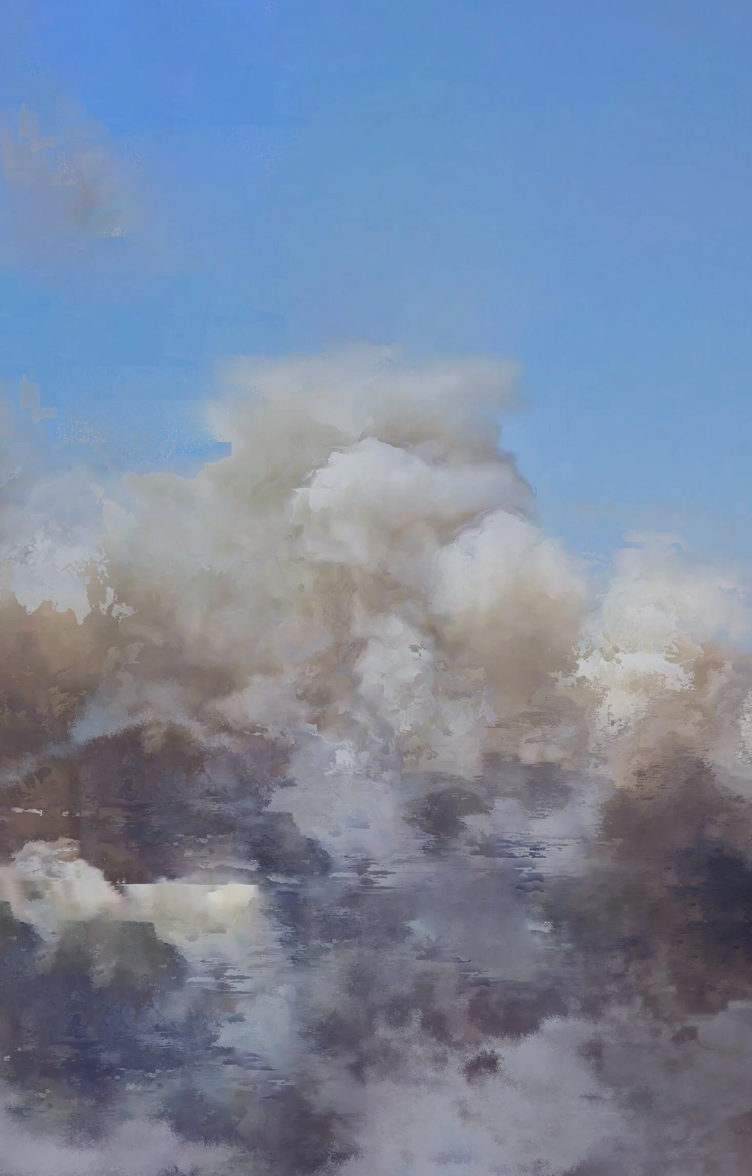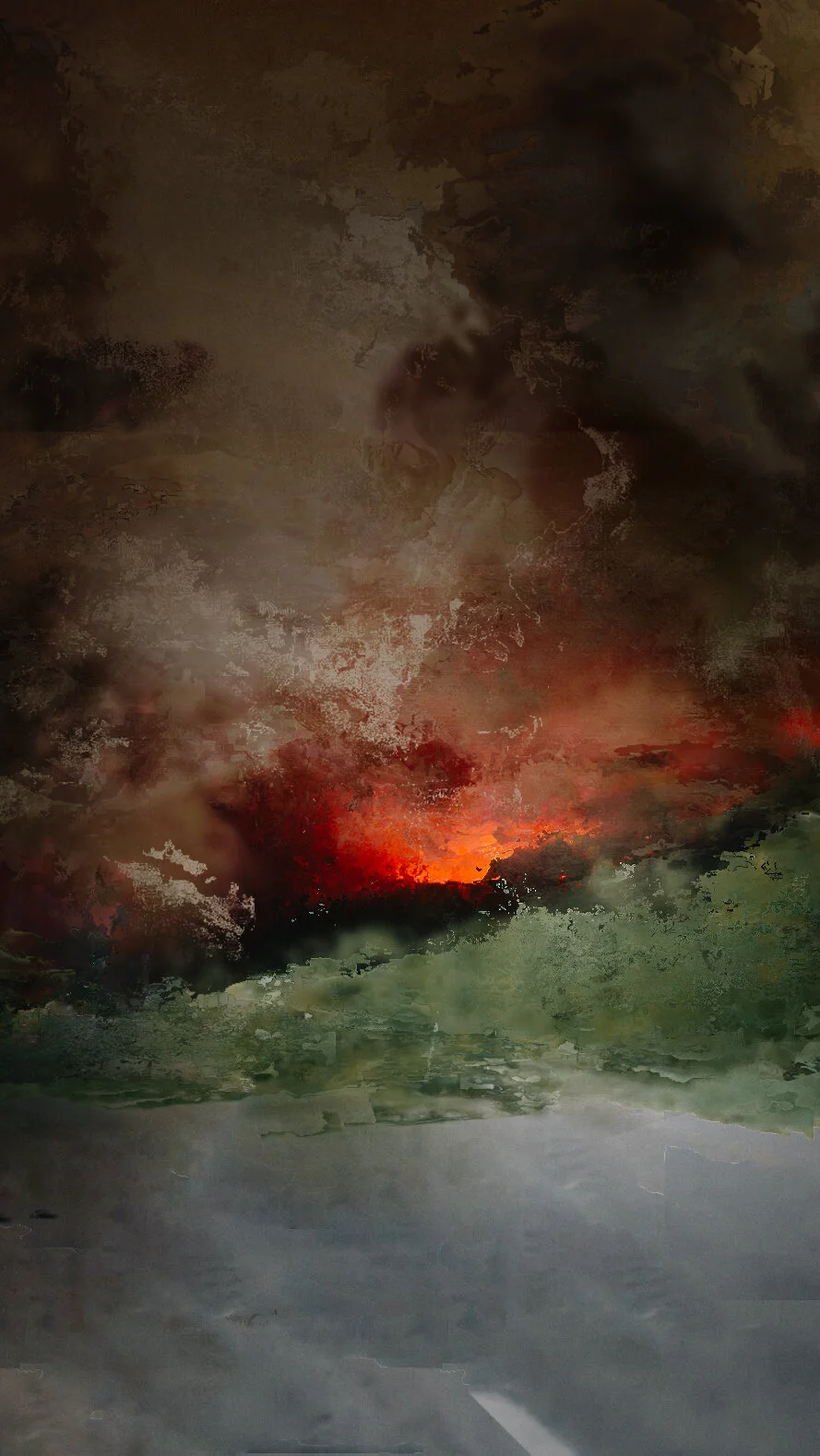 Those images were created based on screenshots taken from videos found on social medias plateform and digitally manipulated, in an attempt to explore the aesthetic of those catastrophic events.